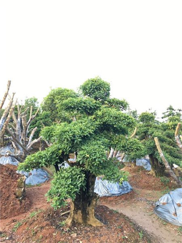 造型杜英:选用生长于山谷里的原生杜英和古树桩进行移植栽培,运用蟠扎,牵拉,修, 剪 等手法制作出形态各异的造型杜英和杜英盆景。