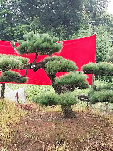 造型黑松:从山地野生的黑松林地,选取天然飞籽播种、生长矮小而粗壮的植株,或是石隙中生长出的老树树桩经过移植栽培,运用攀扎,修剪整枝等手法制作出姿态雄壮,高亢壮丽的造型黑松和黑松盆景。